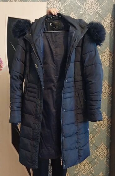 Qadınlar üçün uzun qış paltosu - Rəng: tünd boz-mavi - Model: uzun, horizontal kapitone tikişli - Yaxa: iri, yumşaq süni kürk yaxalıq (çıxarıla bilən ola bilər – bərkidicilər görünür) - Bağlanma: ...