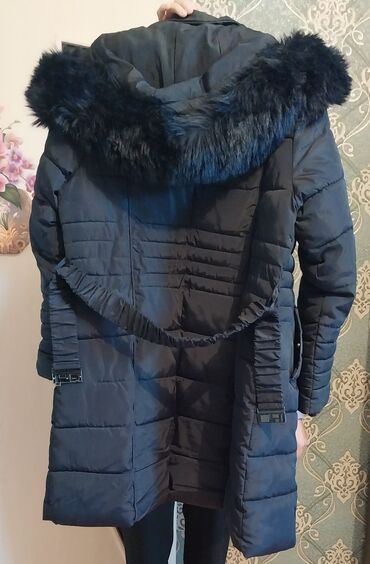 Qara qadın qış paltosu 80 man. - Uzun, yastı tikişli, isti şişmə (puf) model - Qalın, çıxarıla bilən kapüşon; kapüşonun kənarında süni kürk bəzəyi (qara-boz tonlarda) - Ön hissə: ikili bağlama – ə...