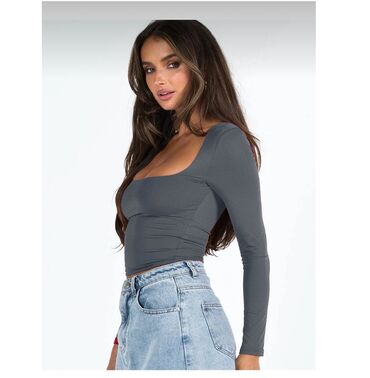 Qadınlar üçün qolsuz ribli top - Model: kvadrat dekolteli, qısa