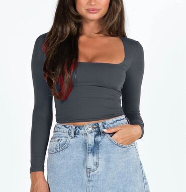 Qadınlar üçün qolsuz ribli top - Model: kvadrat dekolteli, qısa kəsimli (crop) top - Rəng: bej/şaftalı tonları - Parça: elastik, incə şaquli rib toxuma; bədənə oturan - Dizayn detalları: qalın ask...