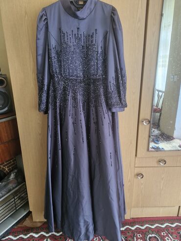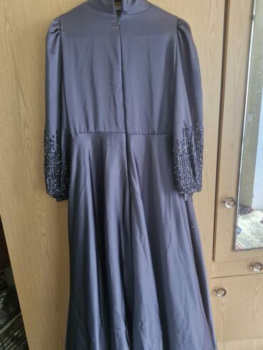 Zərif uzun ziyafət paltarı Marka: 🍃Mihir İstanbul🍃 Yeni kimidir(1defe geyinilib) - Rəng: tünd boz/grafit, yüngül parıltılı - Modell: tam ətəkli, A-kəsim; beldən yığmalı, axıcı və çoxqatlı ətək - P...