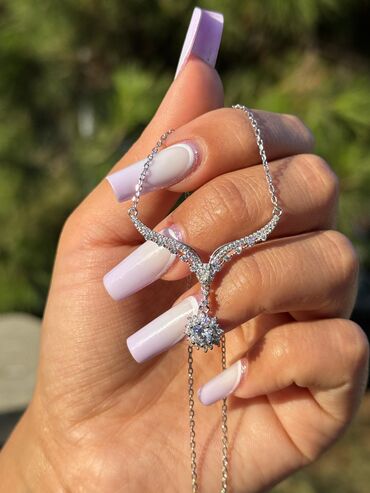 Zərif gümüş rəngli boyunbağı – V formalı zəncir və mərkəzdə asma bəzək
