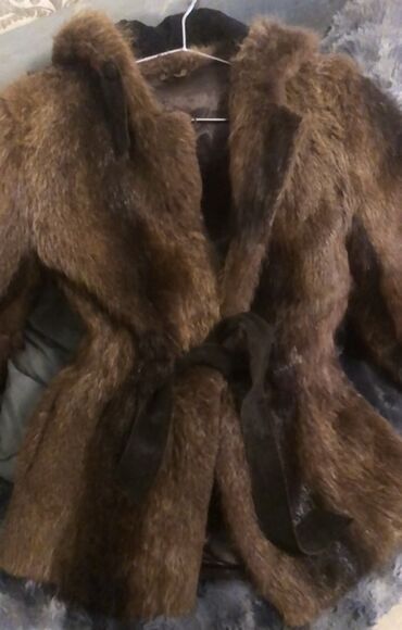 Təbii xəz kürk - Material: Yumuşaq, təbii xəz - Rəng: Tünd/qəhvəyi tonlarda - Dizayn: Ön hissədə uzun, sıx xəz panelləri; qol və gövdədə bloklu/qubikli tekstura - Ölçü: M razmer; dolu S geyinən xa...