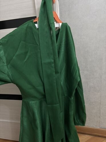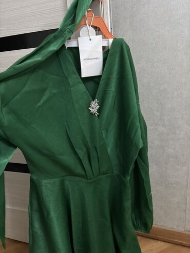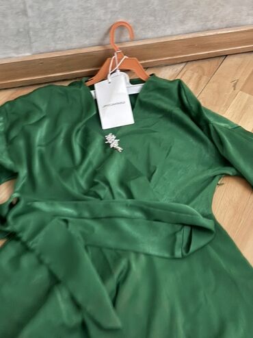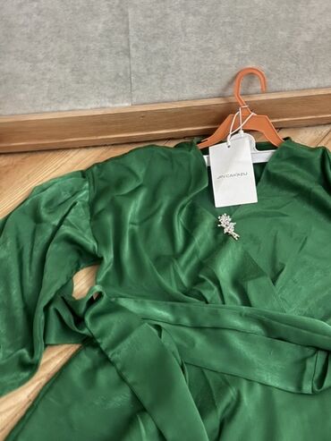 Qara/qrafit atlas parıltılı, birqollu kokteyl/axşam geyimi. - Dizayn: Asimmetrik və bir çiyindən açıq kəsim. Bir qol tərəfdə volan detalı. - Bəzək: Boyun xəttindən başlayıb ön hissə boyunca və ətə...