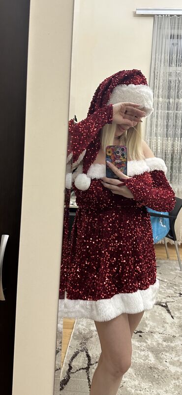 Yeni il kostyumları dəsti - Qırmızı Şaxta baba komplekti: yumşaq məxməri parça, ağ süni xəz haşiyələr. Dəst: şapka, uzun jaket (önü açıq), şalvar. Rahat oturuş, isti material, foto və tədbirlər üç...