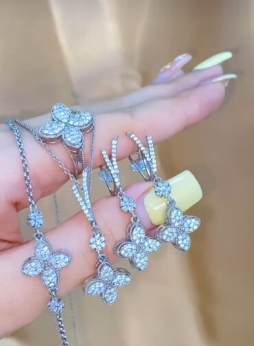 - Dəst tərkibi: üzük, kolye, sırğa və iki biləklik elementləri ilə uyğunlaşdırılmış komplekt