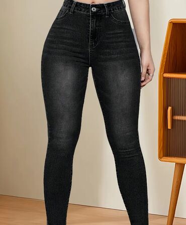 Qadınlar üçün yüksək belli dar kəsim cins şalvar