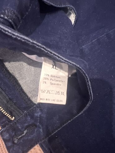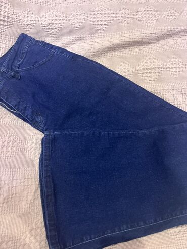 1 dəfə geyinilib Qadın şalvarı – denim (jeans) - Rəng: klassik tünd mavi - Model: yüksək belli, “paperbag” tipli büzməli bel - Bağlanma: iki düymə + fermuar - Kəsim: daralan balaq (tapered), rahat...