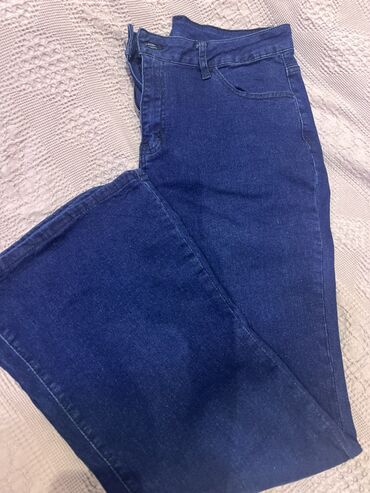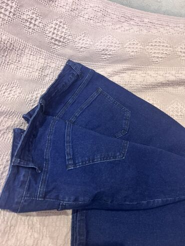 Yeni etiketi uzerinde qadınlar üçün tünd göy rəngli denim şalvar - Model: boru kəsimli/alt hissəsi azca “flare” forması - Yüksək bel 36 olcu - Düz tikişlər, metal düymə və fermuar bağlanması - Ela...
