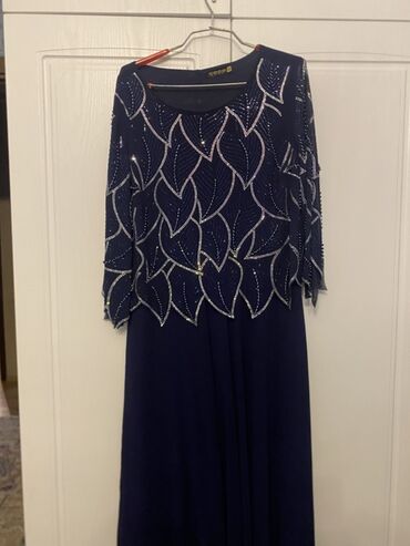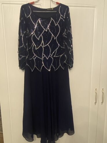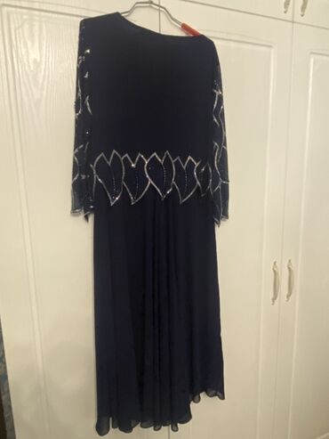 Zərif axşam/ziyafət geyimi – tünd göy rəngdə, ikiqat effektli dizayn.