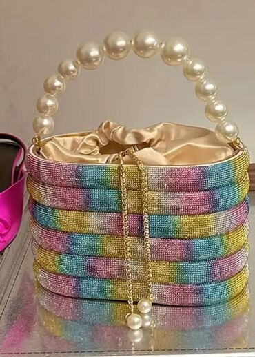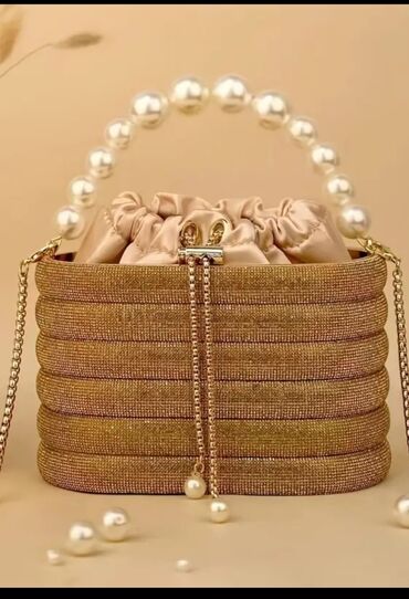 Parıldayan tekstura, iri incilər, elegant qızılı zəncir və atlas astar lüks görünüş yaradır. Çantalar sifarişle gelir. Elde olmasa sifarişiniz 10-12gun erzinde gelecek.