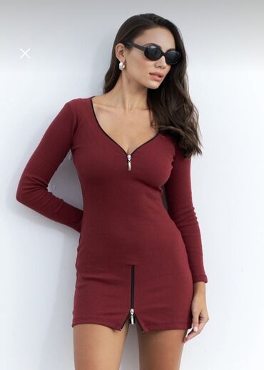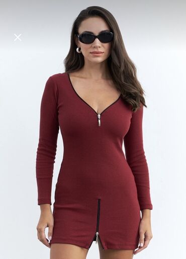 Qara qadın donu – önü parçası mat teksturada, arxa hissəsi isə dəri effekti (eko-dəri) panellə işlənib. Düz kəsim, dizə yaxın uzunluq. Yarımqol (dirsəyə qədər) və qolların yanlarında metal fermuarl...