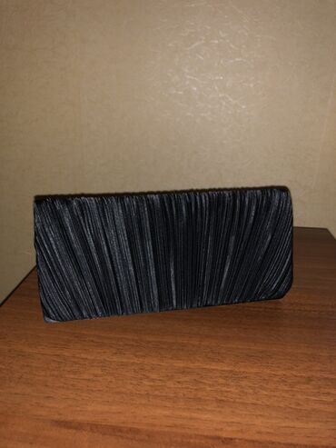 Zərif gecə/ dəvət çantası - Rəng: qara, incə parıltılı fakturalı (şaquli qatı büzməli dizayn) - Karkas: sərt korpus, qızılı metal çərçivə - Qapaq: yuxarıdan klipsli bağlanma, kristal daşlarla bəzə...