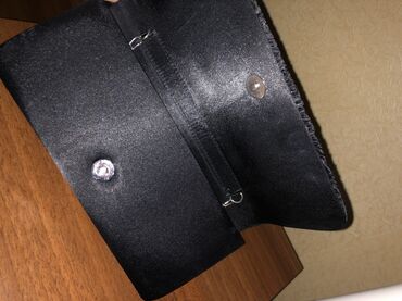 Qara dəri əl çantası (clutch) - Rəng: klassik qara - Material: süni dəri görünüşlü, yüngül və rahat təmizlənən - Dizayn: üst qapaqlı, dekorativ metal kəmər-toka detallı. - Forma: uzunsov, nazik pro...