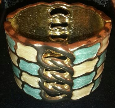 Enli dizaynı olan metal qolbaq. Qolbağın xarici səthi sarı, ağ və qara