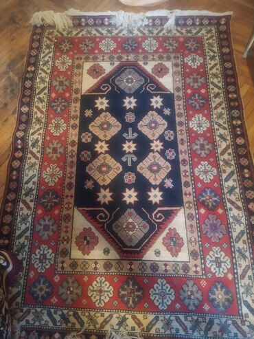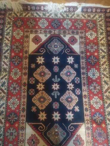 salam. Qazax xalçasıdır, təbii əl ilə toxumadır. Antik xalçadır. 28 yaşı var. - Tip: dekorativ döşəmə xalçası - Ölçü: təxminən 2,5 x 1,3 m (şəkilə əsasən) - Dizayn: mərkəzdə romb/mihrabvari medaly...