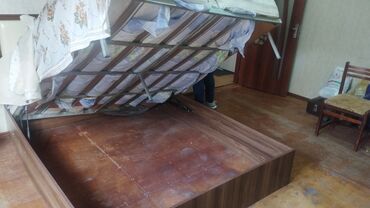İkianalı böyük yataq dəsti Tecili satilir!!!Matras daxildi - Ölçü: təxmini 160x200 sm (king-size tipli iki nəfərlik) - Korpus: açıq ağac laminat, alt hissə qapalı baza ilə - Başlıq: bej rəngli yum...
