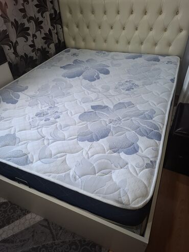 - Döşək: orta qalınlıqda yaylı/ortopedik tip, tünd mavi yan tərəflər, hava ventilyasiya dəliyi, üst hissəsi açıq rəngli güllü örtüklə.