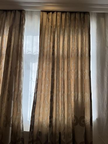 Ölçülər pəncərə genişliyinə görə bol büzgü ilə tikilib, döşəməyə qədər uzunluqdadır. Səliqəli tikiş, yanlardan və aşağıdan düzgün işlənmiş kənarlar.