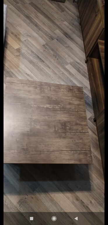 - Material: taxta teksturalı laminat/MDF görünüşlü səth, tünd qəhvəyi ağac naxışlı.