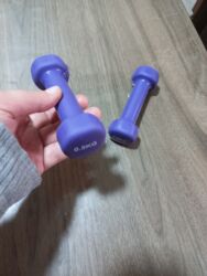 Teze gantel satilir 5.5 kglig.Tezedi islenilmeyib.Ici betondu,tutacagi demir,etrafi plasmasdi.20 azn