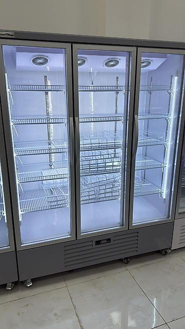 - Üç qapılı şüşə vitrinli soyuducular – LED daxili işıqlandırma, çoxsəviyyəli tənzimlənən rəflər, ventilyatorlu soyutma; təkərli baza sayəsində asan hərəkət.