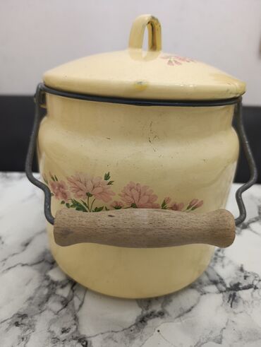 Digər materialEmallı metal qazan/vedrə tipli qab – qapaqlı və daşıma saplıs.sovetin emalli,qapaqli,yaxwi veziyyetde bidon qabi