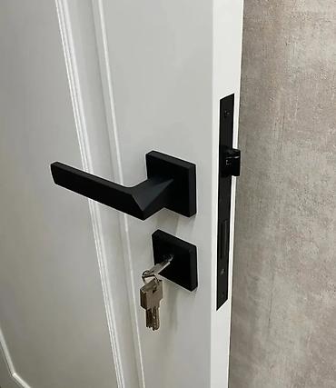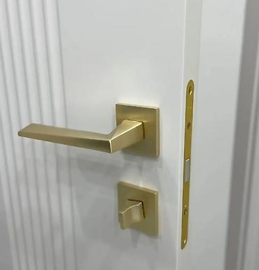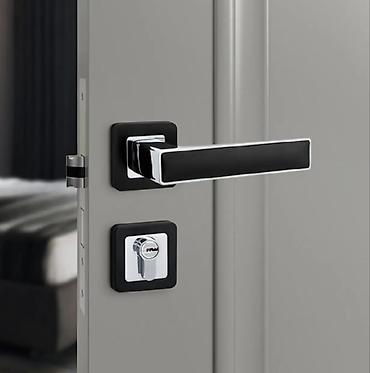 Qapı tutacağı və kilid dəsti - Müasir dizayn: kvadrat rozetkalar, düz