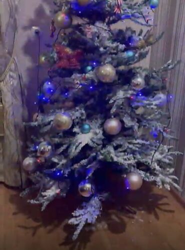 Qar effekti ilə bəzədilmiş süni Yeni il şam ağacı