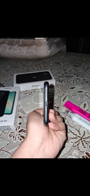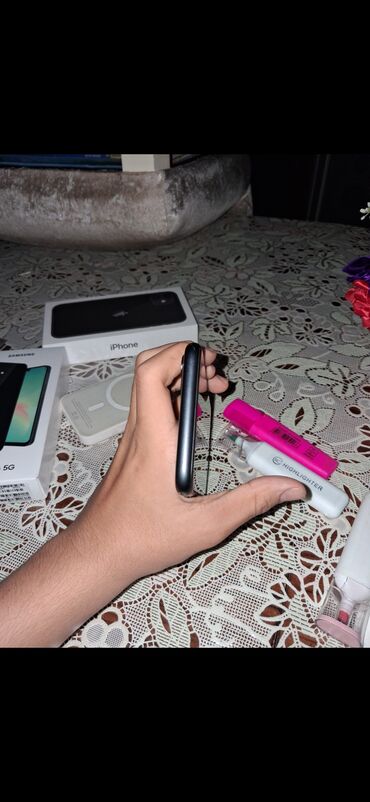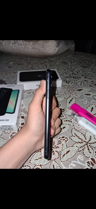 Apple iPhone 11, rəngi qaradı, 128-yaddaş, ram-4, pil-76, ana ekran dəyşilib 1-dəfə, üstündə kabroda verilir, alannan bəri telefon məndədi, real alıcıya endirim olacaq.
