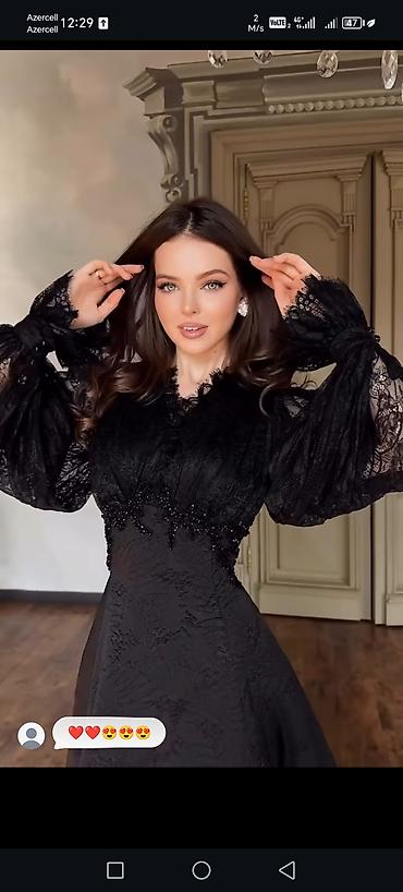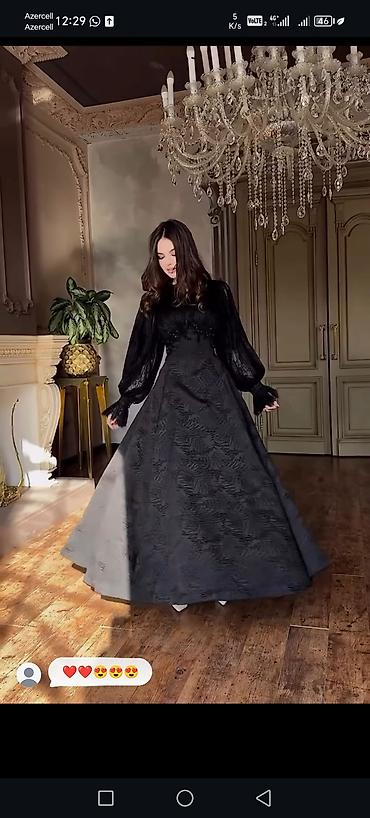 Bənövşəyi rəngdə zərif gecə/libas - Model: Uzun ziyafət donu, A-kəsim ətək - Parça: Axıcı, parıltılı atlas effekti olan əsas parça; üst hissə və qol hissələri şəffaf tül üzərində xırda daş və munc...