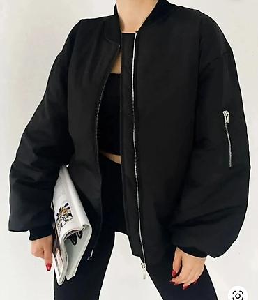 Qara bomber gödəkçə - Klassik, minimal dizayn: yaxası, ətəyi və