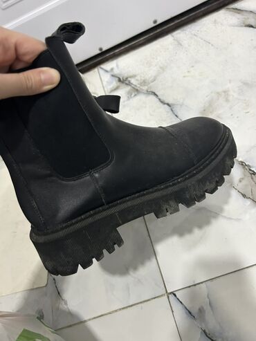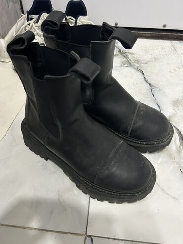 Qara rəngli qalın altlıqlı Chelsea tipli çəkmələr