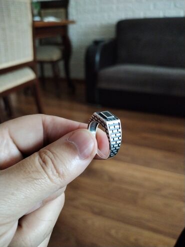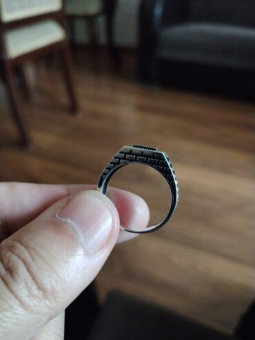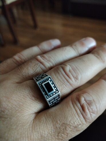 Real aliciyla razilasma var . ümüş kişi üzüyü, üstündə qara, düzbucaqlı daşla dizayn edilmişdir. Üzüyün bandı zəncirvari naxışlıdır və qara daş dörd dırnaqla bərkidilmişdir. Bu üzük gündəlik istifa...