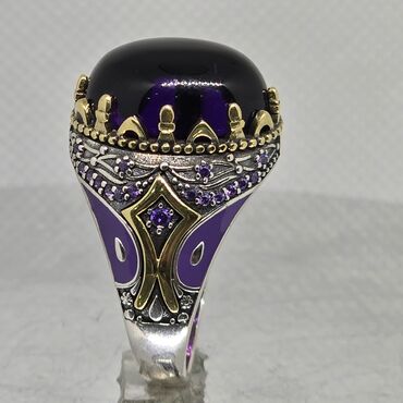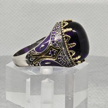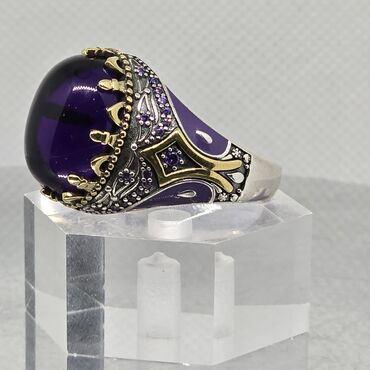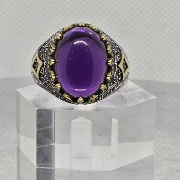 BənövşəyiTebii ametist daş, gümüş 925prob, kişi üzüyü. Əl işi qızılı kaplama elementlər ve mina ile bezenilib. Dəbli görünüşü ilə fərqlənir və xüsusi günlərdə istifadə üçün idealdır.