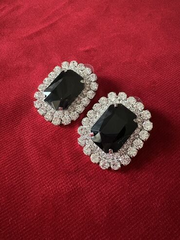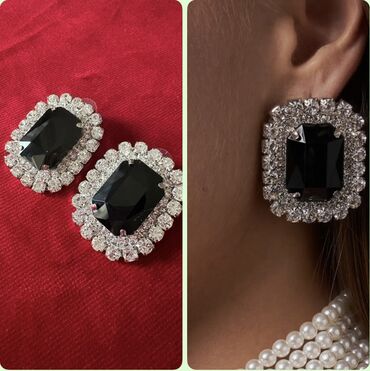 - Qadınlar üçün 2 cüt sırğa dəsti 1) Dairəvi dizaynlı, tünd yaşıl-qara rəngli parlaq daş mərkəzli klipsli sırğalar. Metallik gümüşü halqa üzərində daşın yarımay hissəsini incə şəffaf bəzək daşları ...