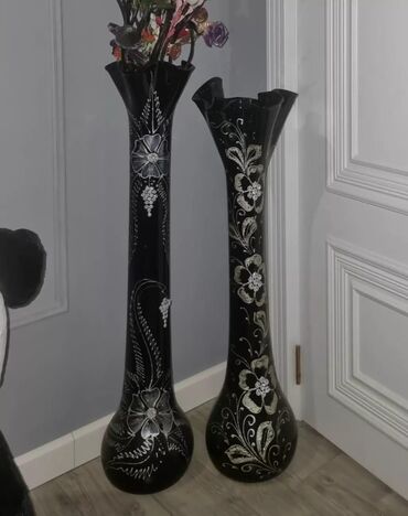 Bogem şüşəsiQara dekorativ döşəmə vazaları – 3 ədəd. Ayrı ayırıda satılır. 3ü bir yerdə 40..