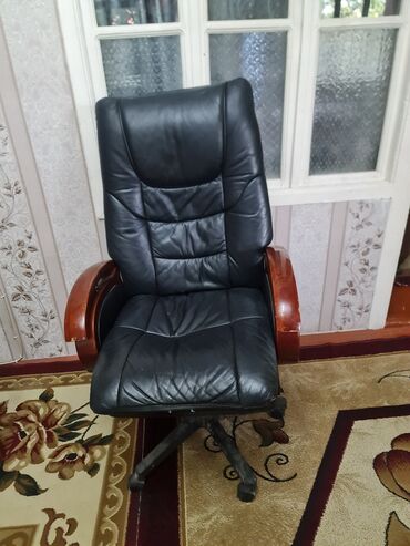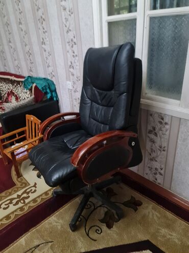 - Material: Yumşaq süni dəri oturacaq və bel hissəsi; laklı taxta qol dayaqları