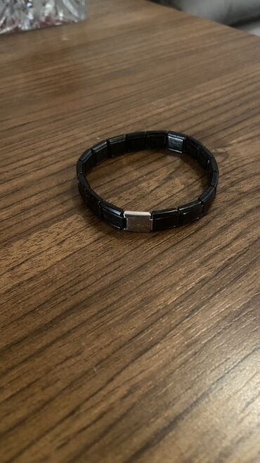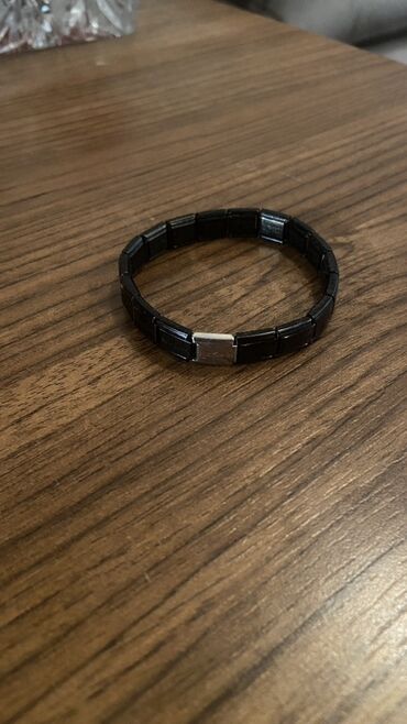 Hematit daşlı elastik bilərzik - Material: parlaq qara-boz tonlu hematit daşlar - Dizayn: kvadrat formalı cilalı hissəciklər və aralarda kiçik silindrik elementlər - Quruluş: elastik ipləmə – asan...