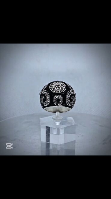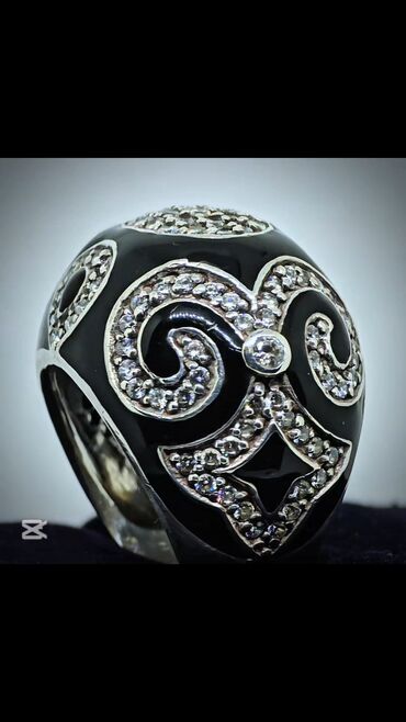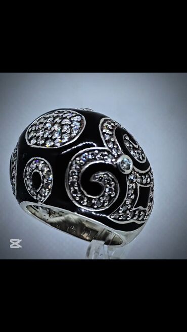 EndirimsizQara emallı möhtəşəm üzük – bəzəkli pave daşlı Rusiya istehsalı
