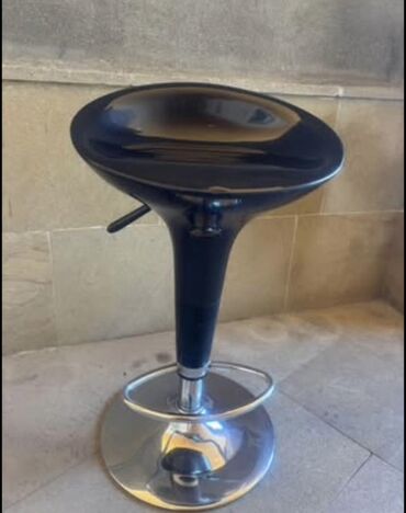 Tək ayaqlı, hündürlüyü tənzimlənən oturacaq. Oturacaq hissəsi qara rəngdə, dayaq hissəsi isə xrom örtüklü metaldandır. Oturacaq hissəsinin erqonomik dizaynı rahatlığı təmin edir. Oturacaq hündürlüyünün tənzimlənməsi üçün qol mövcuddur. Bar masaları və ya yüksək iş səthləri üçün uyğundur.