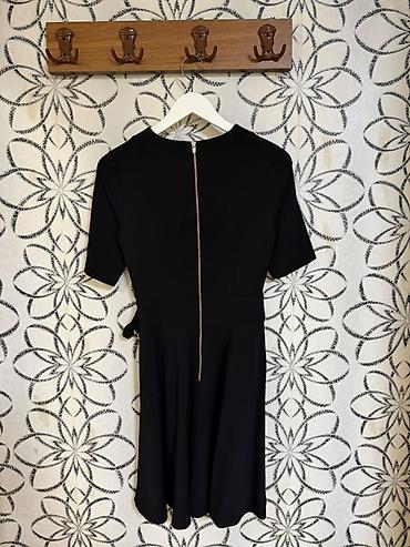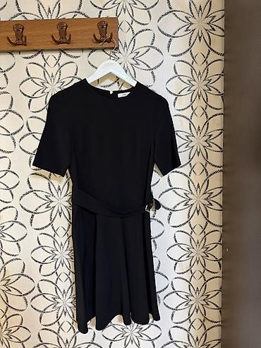 Sadə və zərif siluet, bədənin xəttini vurğulayan bel kəməri ilə çoxistifadəli qara don.
