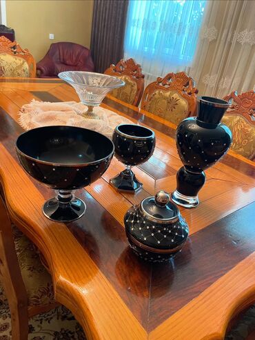 Lüks dekorativ qab dəsti - Material: qalın şüşə/kristal tipli, əl