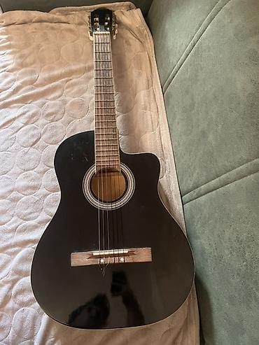 Klassik gitara – kəsikli (cutaway) korpus dizaynı, qara parlaq lak örtük.