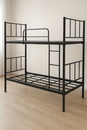 Metal konstruksiyalı, qara rəngli ikimərtəbəli çarpayı yataqxanalar, hostellər və ya kiçik yaşayış sahələri üçün praktiki həlldir. Yuxarı çarpayıda təhlükəsizlik üçün qoruyucu barmaqlıq, hər iki ça...