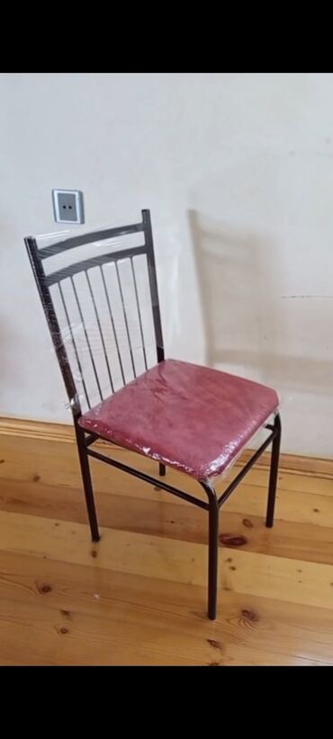 Qara rəngdə, metal konstruksiyalı sadə stul. Oturacağı yumşaq materialla örtülüdür. Evdə və ya ofisdə istifadə üçün uyğundur.
