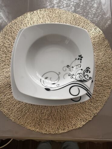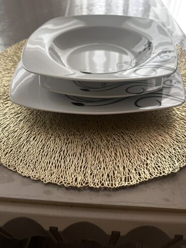 Kvadrat formalı ağ porselen boşqab dəsti.heresinden 11eded ,(Cemi 33ed)