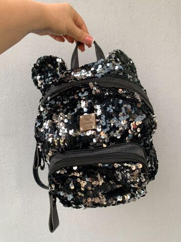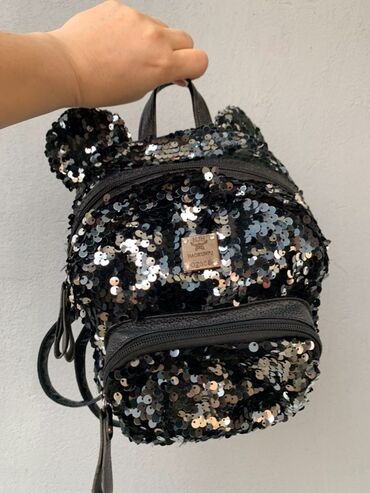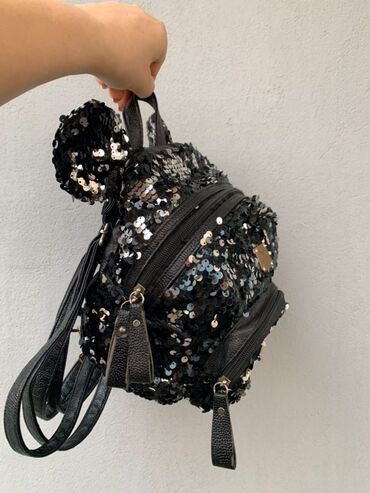 Parlaq payetlərlə örtülmüş qara mini bel çantası/ryukzak.