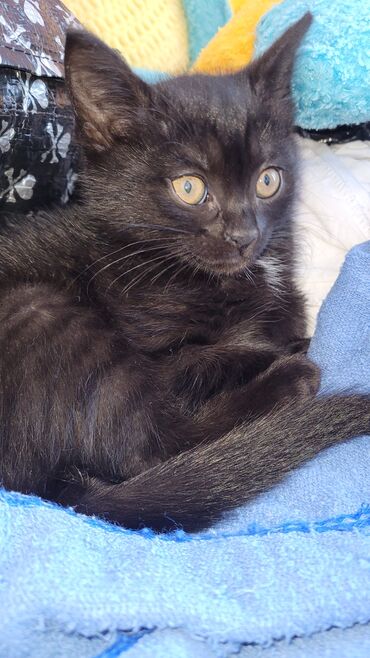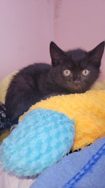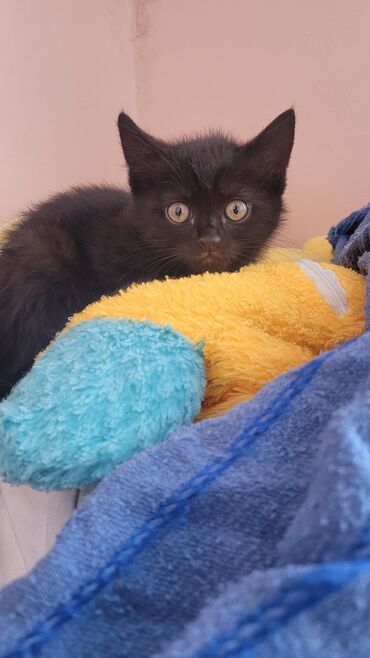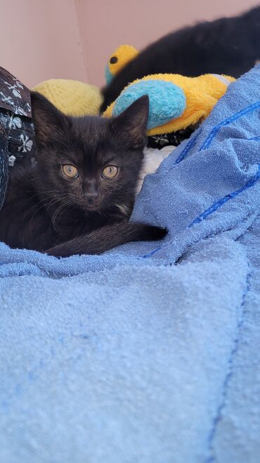 - Şəkillərdə pişik balası yumşaq yorğan və oyuncaqlar arasında göstərilib.