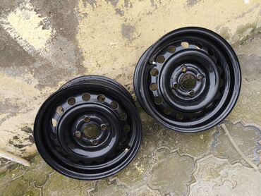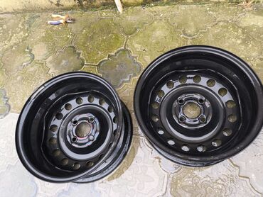 Polad disk (rims) – 2 ədəd - Material: polad - Rəng: qara - Ventilyasiya üçün dairəvi deşikli klassik dizayn - 4 boltlu mərkəz (bolt deşikləri görünür) - Şin klapanları üzərindədir - Şinlərsiz sat...